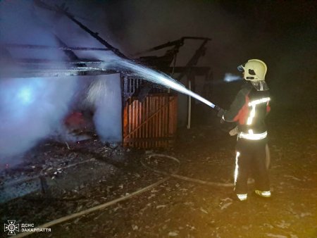 Нічна пожежа на Тячівщині: вогонь знищив гараж і горіх, але будинок вдалося врятувати