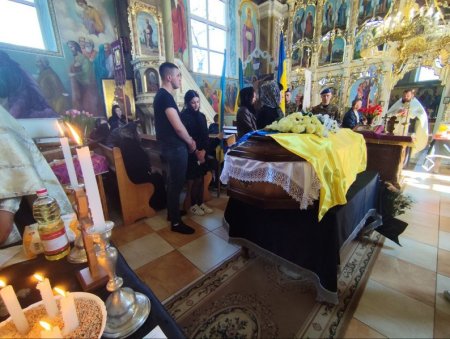 Прощання із полеглим воїном відбулося у Свято-Георгіївському православному храмі у селі Підвиноградів.