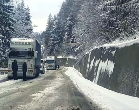 На Закарпатті склалася критична ситуація на гірських перевалах. Через рясні снігопади та, як стверджують очевидці, бездіяльність дорожніх служб, великовантажні автомобілі не можуть самостійно подолати складні ділянки доріг.