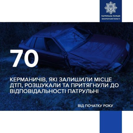 Сімдесят спроб утекти — і сімдесят провалів. Від початку року патрульні поліцейські Закарпаття розшукали 70 водіїв, які намагалися уникнути відповідальності, залишивши місце ДТП.
