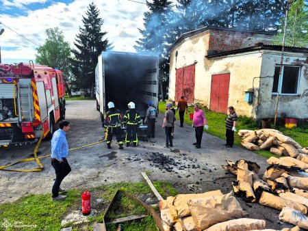 Вогняна загроза на Закарпатті: на Мукачівщині спалахнув причіп із 1650 мішками деревного вугілля