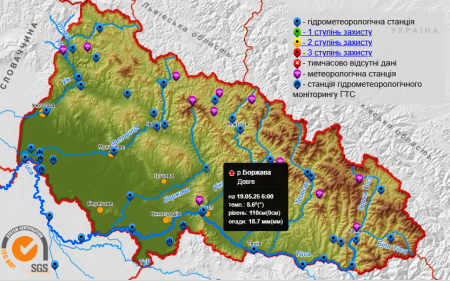 Одна конкретна станція поблизу р. Боржава Довге зафіксувала такі дані о 6:00 ранку 19 травня 2025 року: