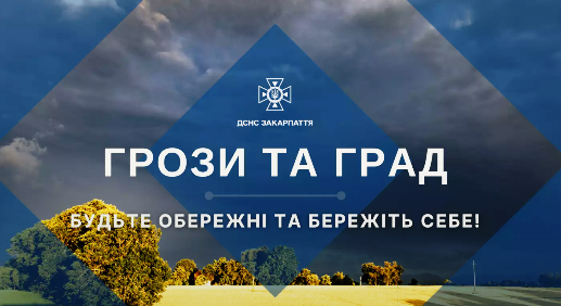 У четвер, 22 травня, мешканців та гостей Закарпатської області попереджають про значне погіршення погодних умов. Вдень очікуються грози, подекуди можливий град розміром від 6 до 19 мм. Також прогнозуються шквалисті вітри зі швидкістю 15-20 м/с.