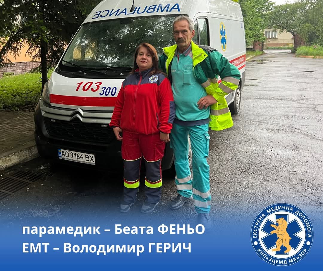 Бригада №300, у складі парамедика Беати Феньо та екстреного медичного техніка Володимира Герича, не гаючи ні хвилини, помчала на допомогу. Незважаючи на пізній час та складність ситуації, медики прибули на місце виклику менш ніж за дві хвилини.