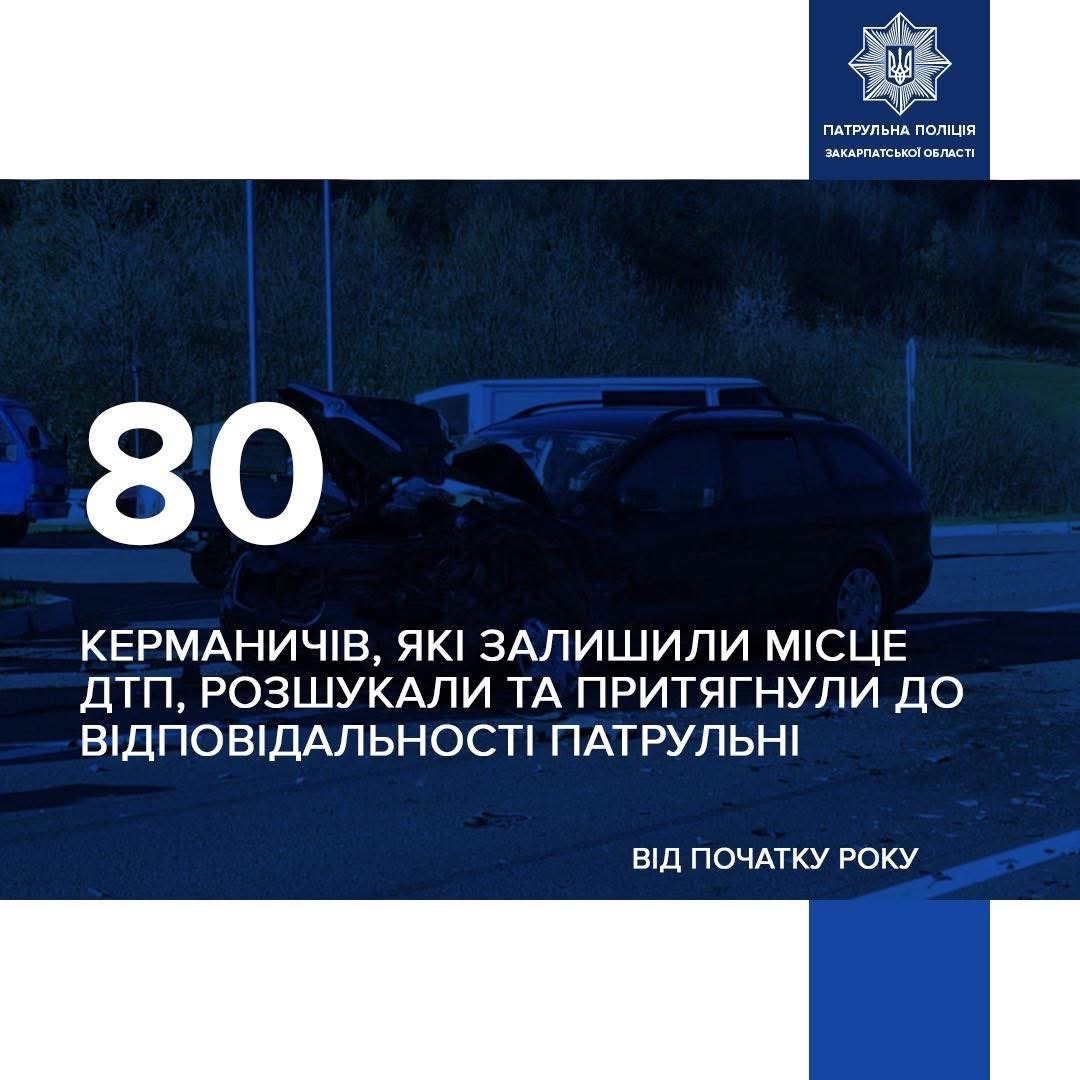 Втік – не значить зник: закарпатські патрульні розшукали 80 водіїв, які втекли з місця ДТП