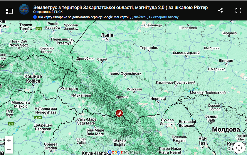 Головний центр спеціального контролю повідомив про невеликий землетрус у Закарпатській області. За даними сейсмологів, поштовх магнітудою 2.0 за шкалою Ріхтера зафіксовано на глибині 5 км.