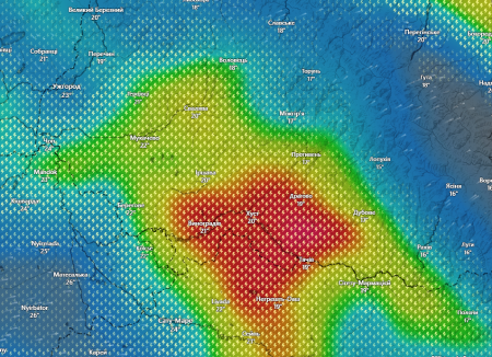 На більшій частині території Закарпатської області, включаючи місто Ужгород, очікуються грози. Синоптики прогнозують, що під час гроз місцями випадуть значні дощі (від 15 до 29 мм опадів за 12 годин або менше). Це може призвести до підтоплень та ускладнення руху на дорогах.