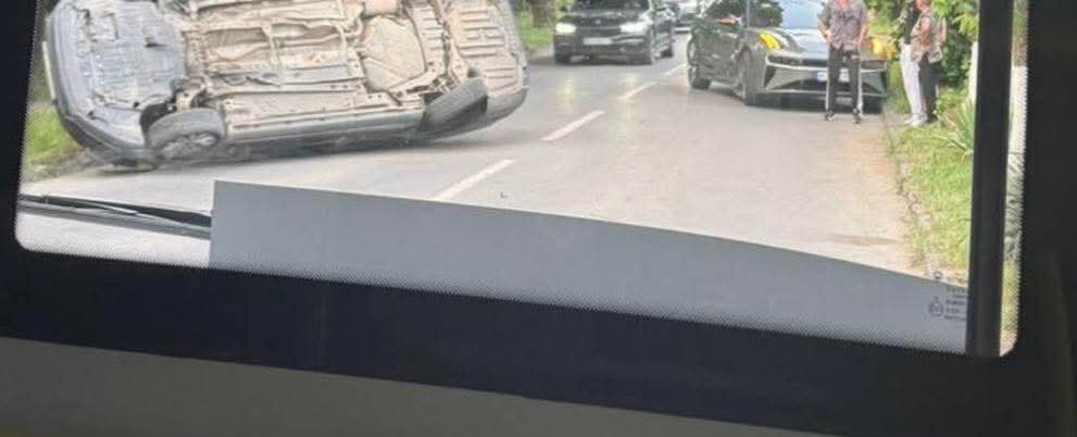 На місці події очевидці зафіксували перевернутий на бік автомобіль чорного кольору. На фото видно, що транспортний засіб лежить на проїжджій частині, а навколо зібралися свідки події. Судячи з кадрів, значних пошкоджень інших автомобілів чи інфраструктури не спостерігається, проте автомобіль, що перевернувся, має значні пошкодження.
