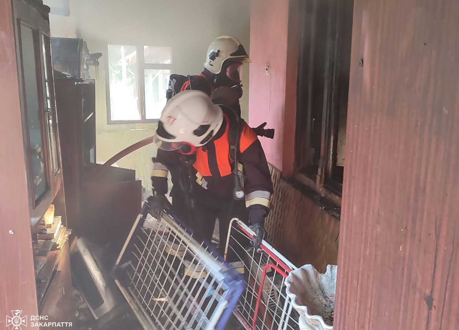 На виклик оперативно прибули рятувальники з Берегова. Через сильне задимлення вогнеборцям довелося працювати у спеціальних апаратах захисту органів дихання. Вже за кілька хвилин, о 14:59, їм вдалося локалізувати пожежу, а до 15:13 — повністю загасити вогонь.