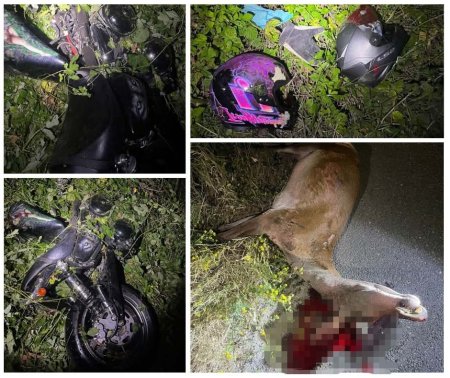 Перечинщина, Закарпаття – В ніч на 23 червня 2025 року, близько опівночі, на трасі між Перечином та Кам’яницею сталася серйозна дорожньо-транспортна пригода за участю мотоцикла та дикої тварини. Внаслідок зіткнення з оленем, який раптово вибіг на дорогу, двоє осіб отримали політравми.