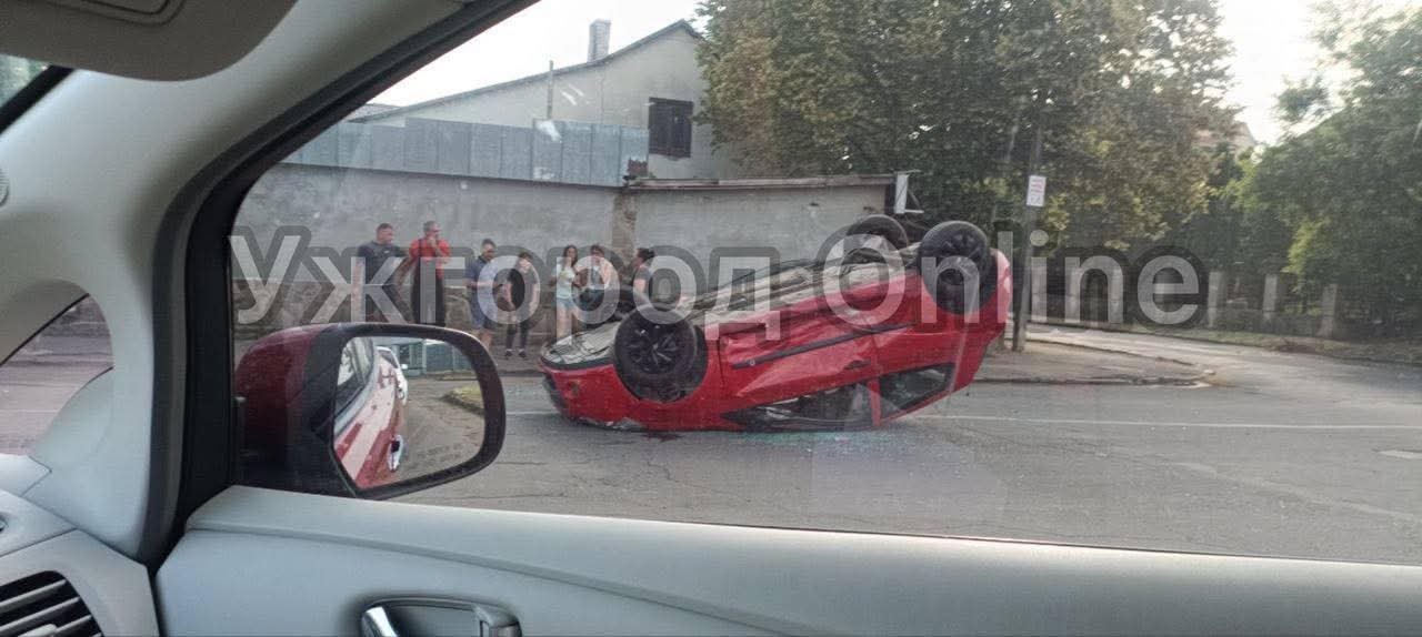 Шокуюча ДТП в Ужгороді: Автомобіль перекинувся на дах посеред вулиці