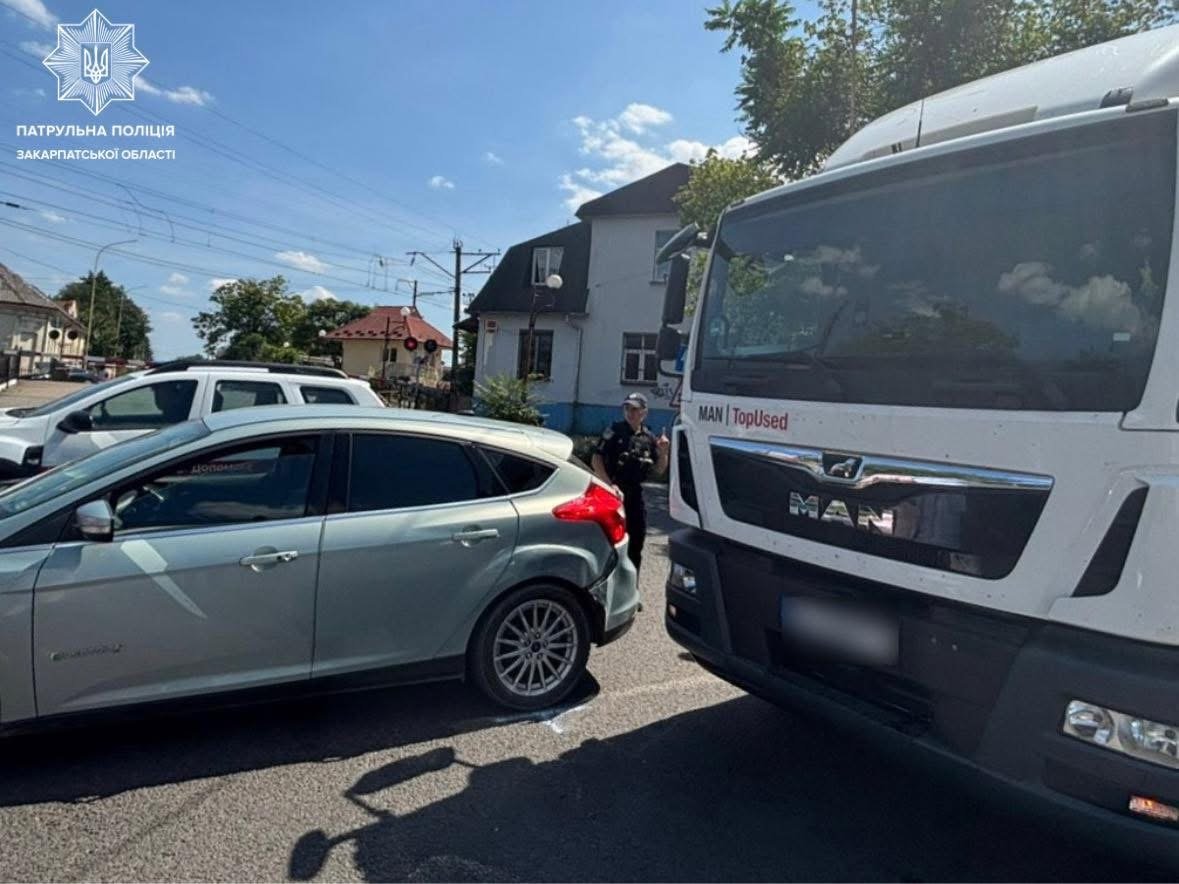 На перехресті вулиць Мукачівської та Шпеника не розминулися легковик Ford і вантажівка MAN. За попередніми даними, водійка легковика не надала перевагу вантажівці, внаслідок чого сталося зіткнення. На неї патрульні склали протокол за порушення правил дорожнього руху.