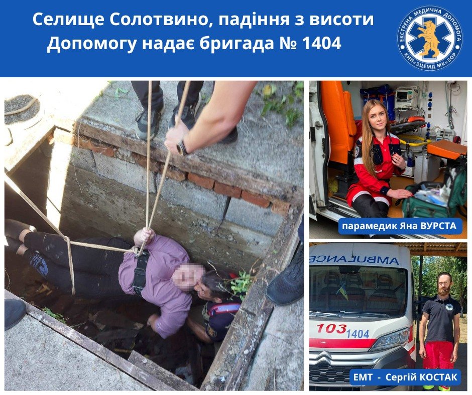 Ситуація виявилася вкрай складною: дістатися до травмованої жінки було неможливо через глибоку яму та обмежений доступ. Не гаючи ані секунди, поки чекали рятувальників, парамедик Яна ВУРСТА прийняла надзвичайно сміливе рішення – спустилася до жінки в яму. Там вона провела первинний огляд, знеболила та заспокоїла пацієнтку. Жінка травмувала передпліччя та ногу, але завдяки професійним і рішучим діям медиків її стан був стабільним.