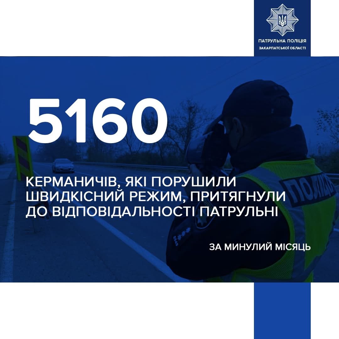 Патрульна поліція Закарпатської області прозвітувала: упродовж червня 2025 року 5 160 водіїв були притягнуті до адміністративної відповідальності за перевищення швидкості. Це тривожна статистика, яка вкотре нагадує — дорога не пробачає легковажності.