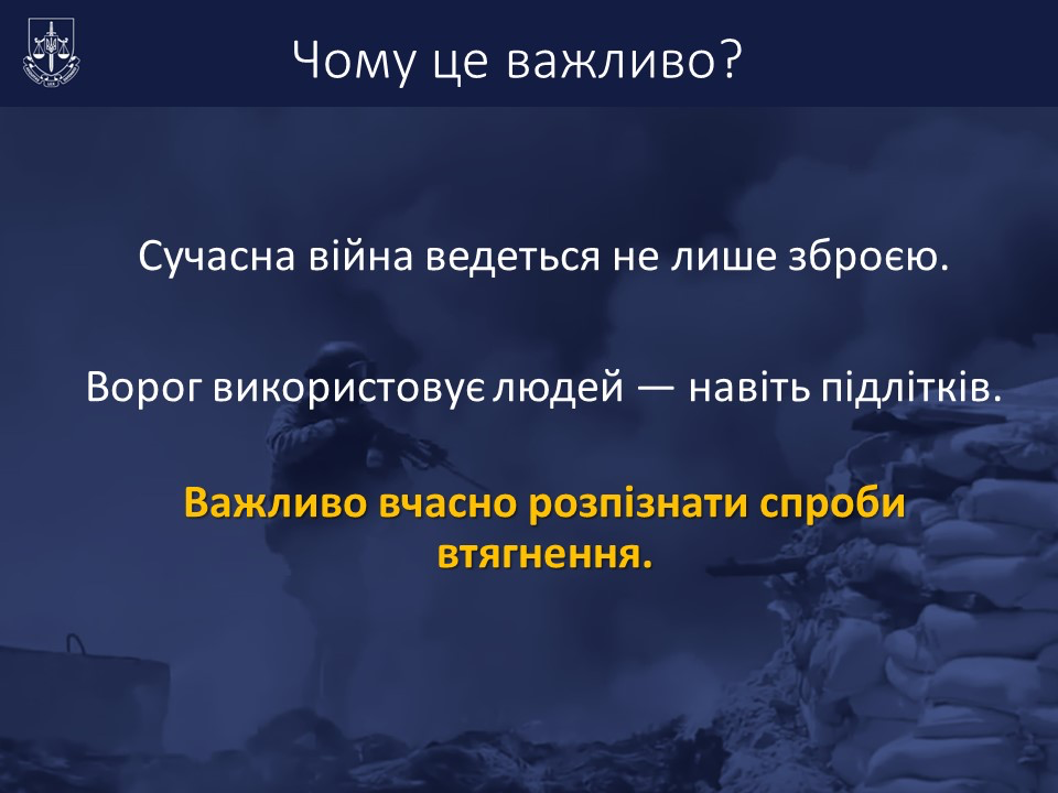 Неповнолітні – більш вразливі для вербування, оскільки не можуть усвідомлювати і прораховувати наслідки своїх дій, на чому і роблять акцент російські спецслужби.
