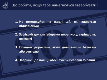 Протидія залученню дітей до вербування, диверсій і терористичних актів розпочинається в першу чергу із найближчого оточення дітей.