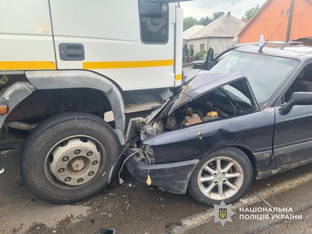 Як повідомили у поліції Закарпатської області, 47-річна жителька села Велика Розтока, керуючи автомобілем Volkswagen Tiguan, виїжджаючи з другорядної дороги, не надала переваги AUDI, за кермом якої перебував 24-річний мешканець села Білки. У результаті відбулося зіткнення, внаслідок якого AUDI відкинуло на зустрічну смугу, де вона врізалася у вантажівку IVECO.