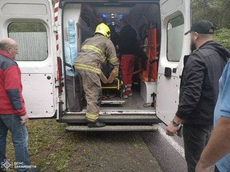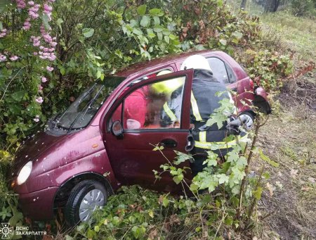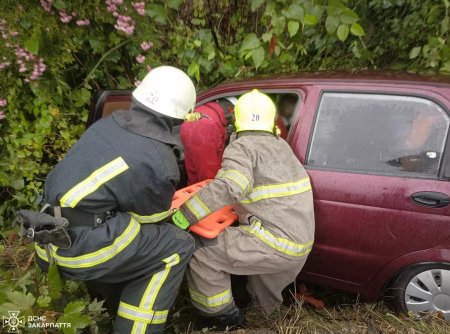 У Рахові легковик злетів у кювет: трьох людей госпіталізовано, двох пасажирів визволяли рятувальники