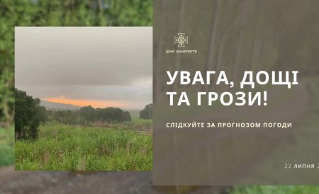 Попри літню пору, погода вирішила зіпсувати настрій — щоправда, як відомо, вона не питає наших бажань. У ніч на 22 липня мешканці центральної та східної частини Закарпатської області можуть знову почути гуркіт грому — синоптики попереджають про грози, які місцями збережуться в регіоні.