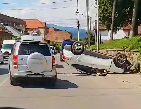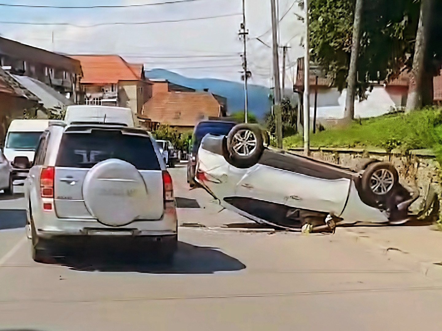 Хуст, Закарпатська область – Сьогодні, 26 липня, у Хусті сталася незвичайна дорожньо-транспортна пригода, яка, на щастя, обійшлася без серйозних наслідків. За попередньою інформацією та свідченнями очевидців, легковий автомобіль самовільно скотився з пагорба та перекинувся на бік, опинившись на проїжджій частині.