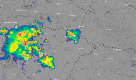 Найбільш інтенсивні грозові осередки наразі спостерігаються поблизу угорського міста Шалґотарьян та рухаються у напрямку Закарпаття. Також фіксуються осередки буревіїв із блискавками на кордоні зі Словаччиною та Угорщиною.