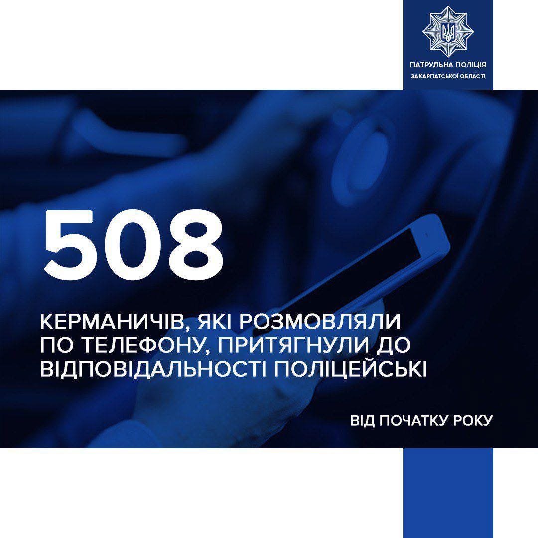 Від початку року поліцейські зафіксували вже 5️⃣0️⃣8️⃣ водіїв, які під час руху користувалися мобільними телефонами.