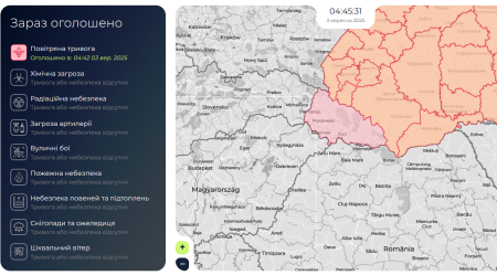 У ніч на 3 вересня 2025 року о 04:42 в Закарпатській області була оголошена повітряна тривога. Станом на 04:45 сигнал тривоги діє в регіоні, мешканців закликають залишатися в укриттях та не нехтувати правилами безпеки.