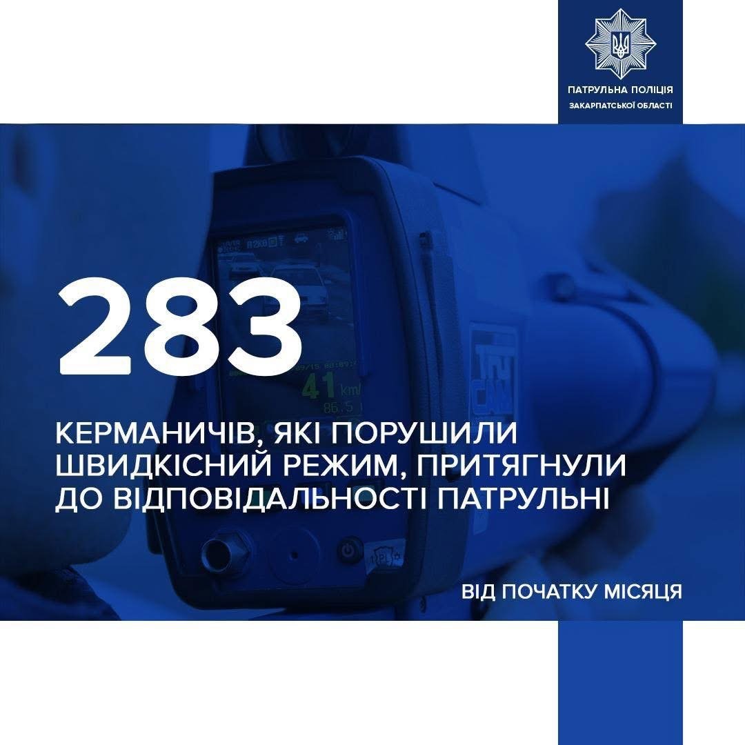 Водії, будьте уважні! Лише від початку цього місяця патрульні поліцейські винесли 2️⃣8️⃣3️⃣ постанови за перевищення швидкісного режиму.