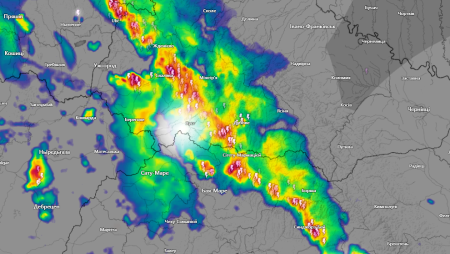 Згідно з метеорологічними даними, грозовий фронт, що охопив регіон, характеризувався високою інтенсивністю опадів та значною кількістю блискавок. На карті видно активні осередки гроз, які пройшлися Закарпаттям, зокрема, через Хуст, Міжгір'я та інші населені пункти.