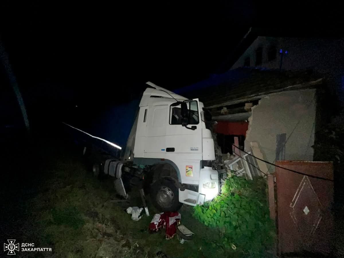 В ніч на 9 вересня у селищі Чинадійово, що на Мукачівщині, сталася серйозна дорожньо-транспортна пригода. Близько 00:30 22-річний водій вантажного автомобіля DAF не впорався з керуванням та врізався у житловий будинок.