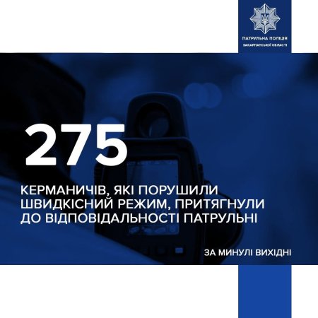 За вихідні патрульні поліцейські винесли 275 постанов за перевищення дозволеної швидкості