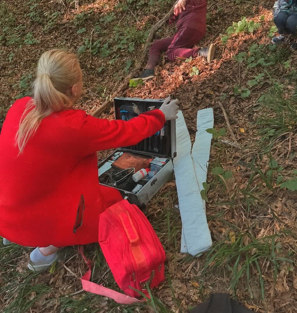 Бригада №401 у складі парамедика Юлії Кидори та екстреного медичного техніка Володимира Коцура оперативно прибула на місце, але далі на медиків чекала гірська стежка. Щоб дістатися до постраждалої, їм довелося подолати 4–5 кілометрів пішки, несучи з собою все необхідне: ноші, шини та медичне обладнання.