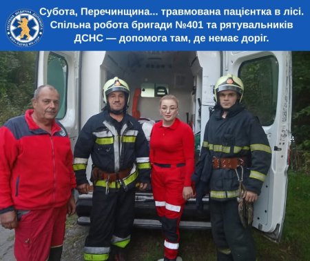 На Перечинщині суботній похід за грибами ледь не обернувся трагедією. О 17:35 на лінію 103 надійшов тривожний дзвінок: 72-річна жінка травмувала ногу в лісі, на ділянці між селами Дубринічі та Пастілки, і не могла самостійно пересуватися.