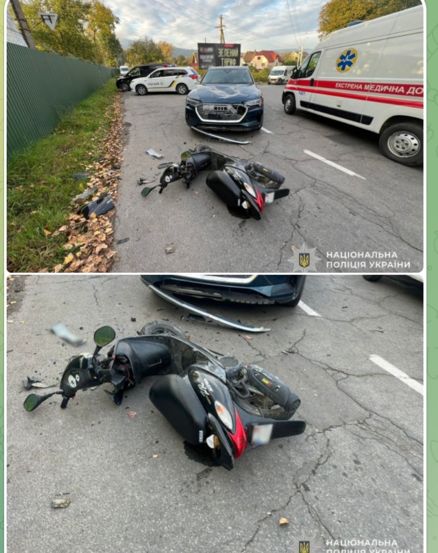 Трагічне ДТП у Тячеві: Поліція розслідує аварію за участю мопеда та Audi — госпіталізовано двох підлітків