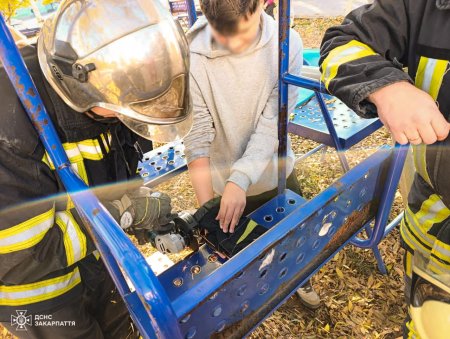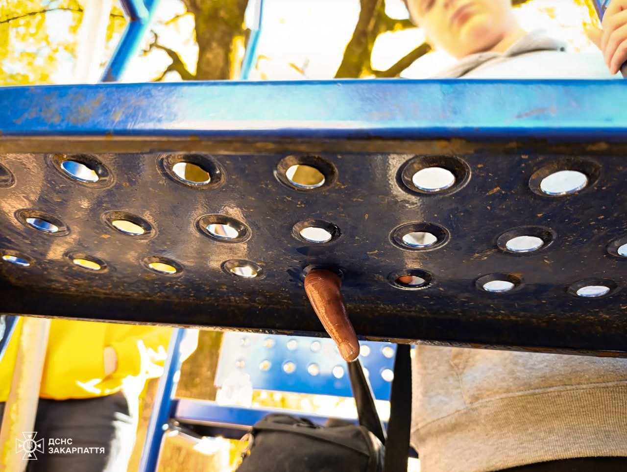 У місті Іршава на Закарпатті рятувальники допомогли звільнити 12-річного хлопчика, який застряг пальцем у металевій конструкції гойдалки. Інцидент стався у парку в центрі міста.