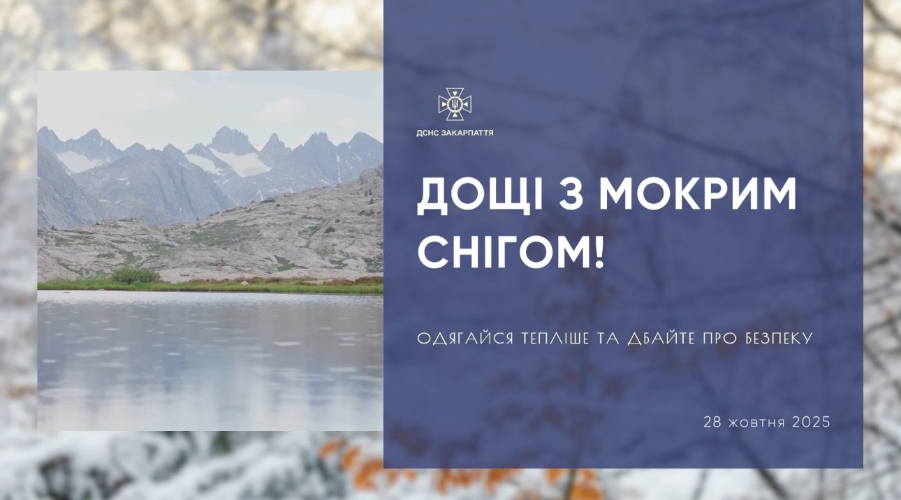 Вночі та вранці 28 жовтня у східних гірських районах Закарпатської області очікується значний дощ з мокрим снігом. Місцями можливий туман.