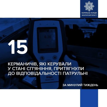 Минулого тижня правоохоронці зупинили 15 водіїв, які сіли за кермо у стані сп’яніння. Кожен із них поставив під загрозу не лише власне життя, а й безпеку інших учасників дорожнього руху.