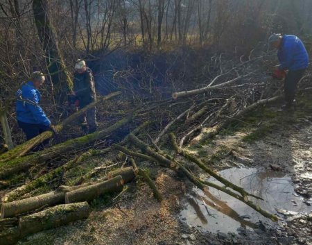 Працівники водного господарства спільно з представниками місцевої влади провели невідкладні роботи з розчищення русла річки Синявка, яке було майже повністю перекрите поваленими деревами.