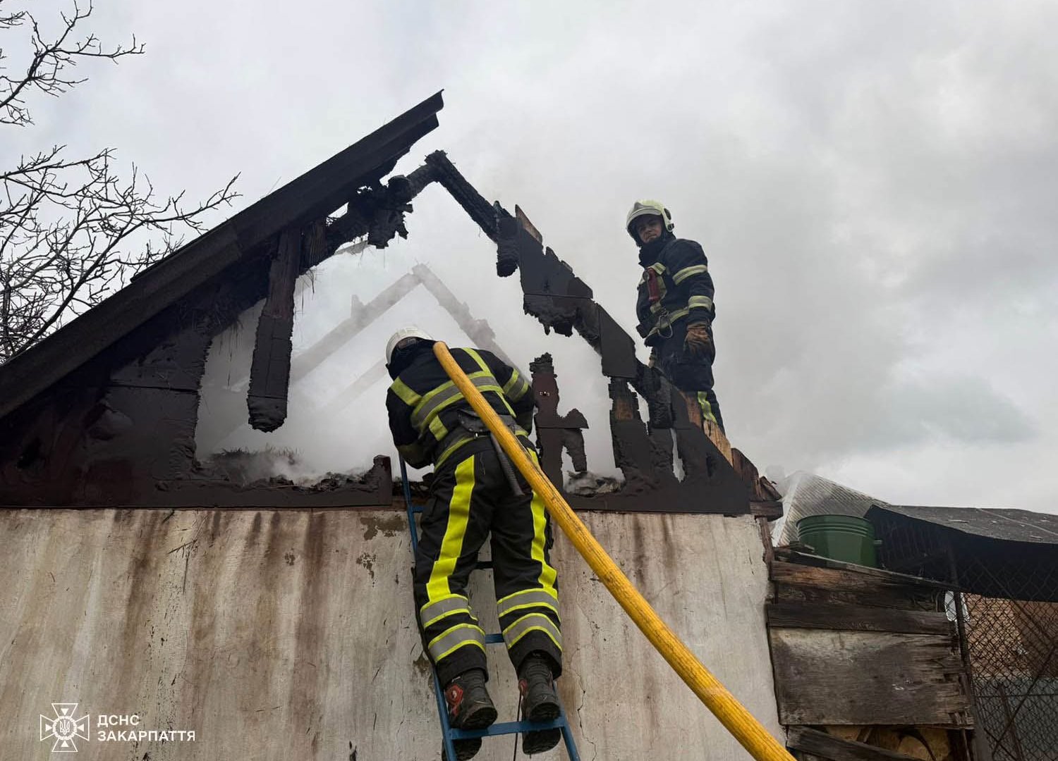 Мешканці вулиці Балагурі в селі Чорнотисів оперативно відреагували на задимлення та викликали рятувальників. Повідомлення виявилося небезпідставним: загорівся дах надвірної споруди, розташованої поруч із житловим будинком.