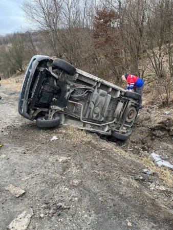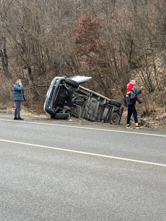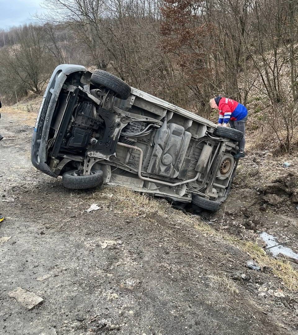 У селі Нижні Ворота на автодорозі сталася дорожньо-транспортна пригода — мікроавтобус з’їхав із проїжджої частини та перекинувся на бік.