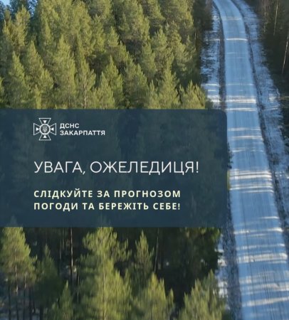 Упродовж 30–31 грудня на дорогах більшої частини території Закарпатської області очікується ожеледиця.
