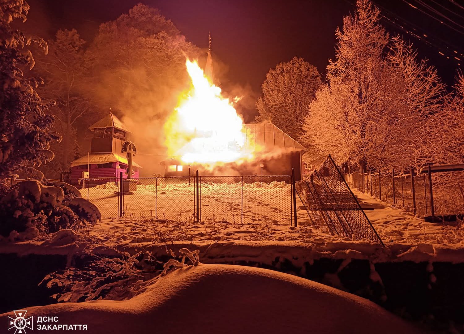 Нічна пожежа у Святвечір: на Закарпатті рятували від вогню унікальну дерев'яну церкву XVIII століття (фото)