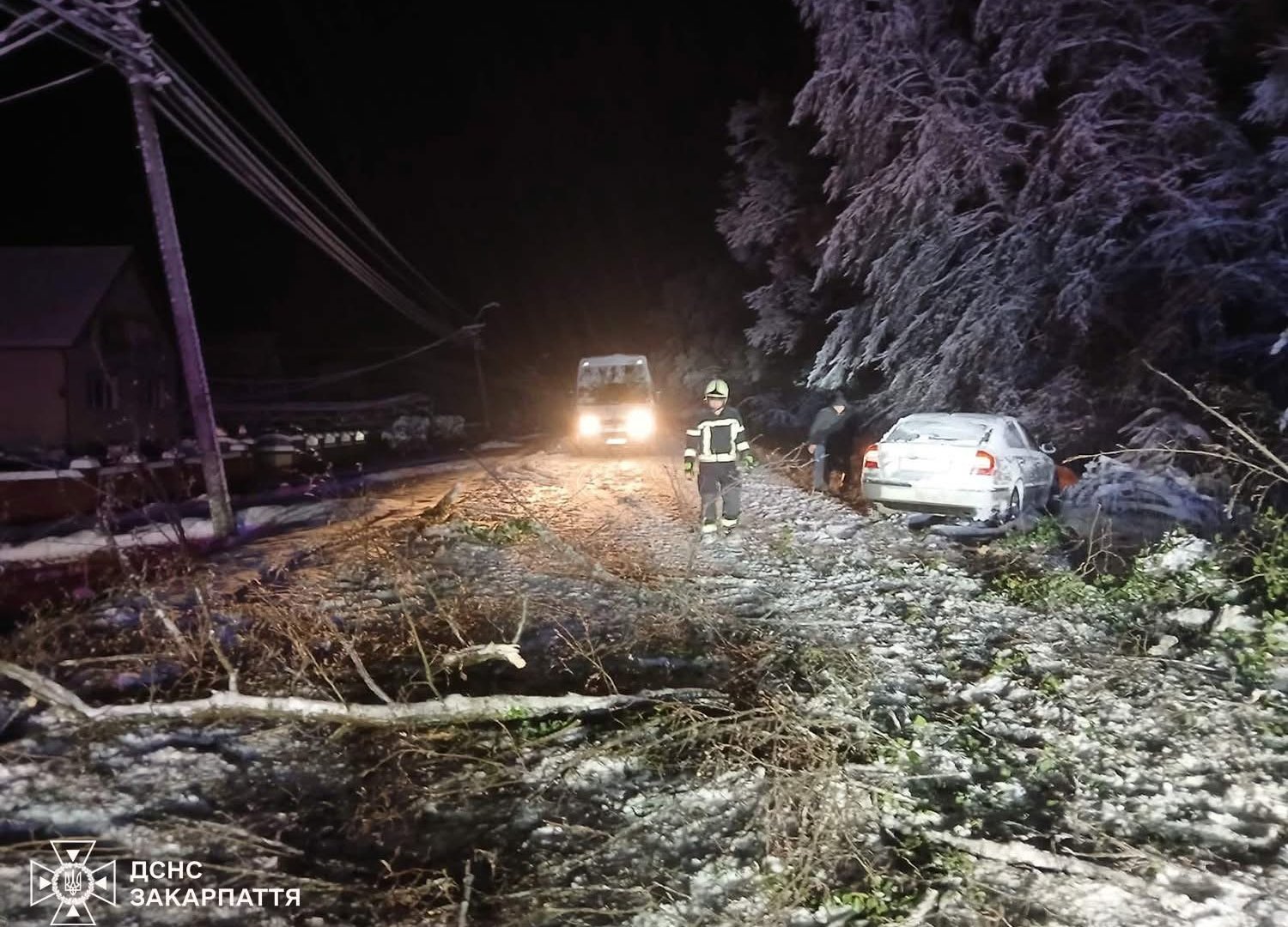 - О 06:33 у місті Хуст на вулиці Дружби дерево впало на припаркований автомобіль Opel Astra.