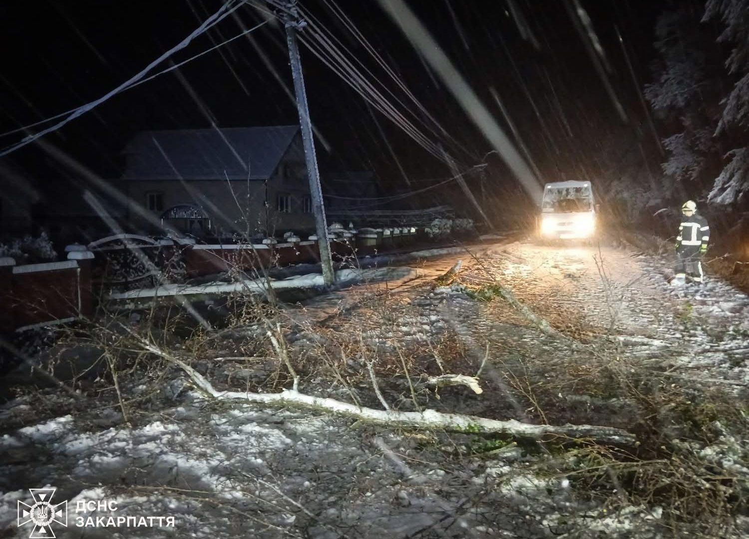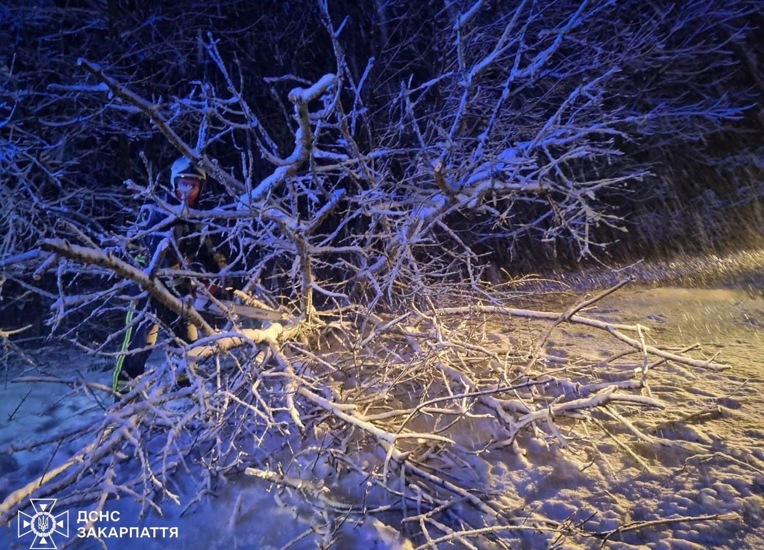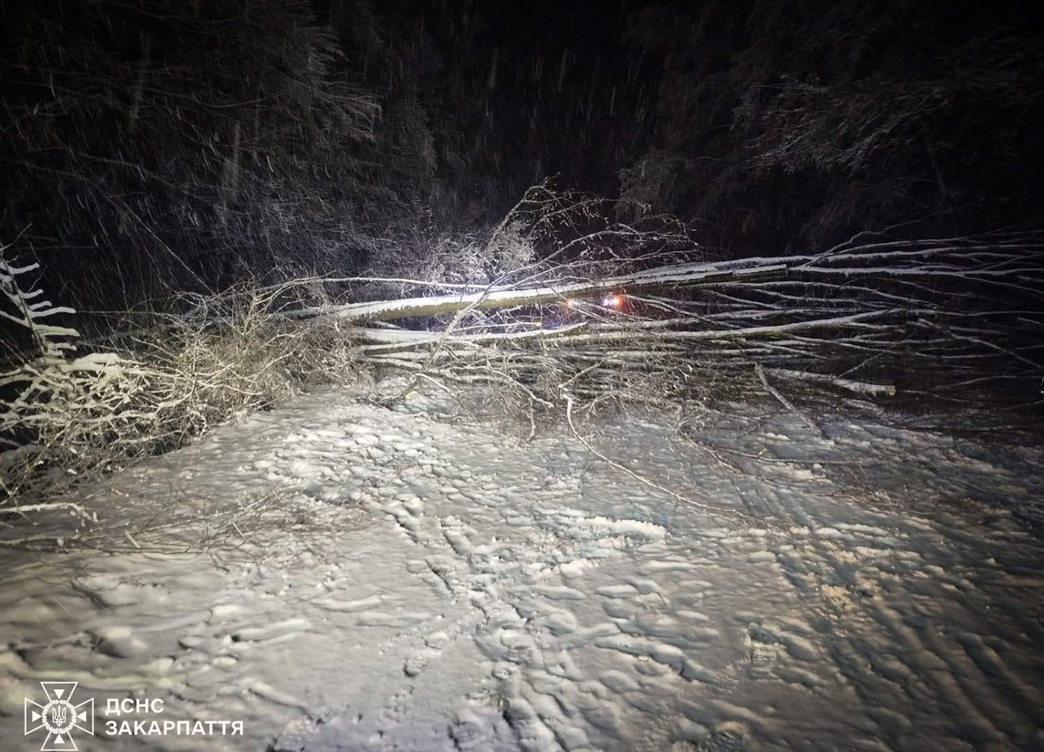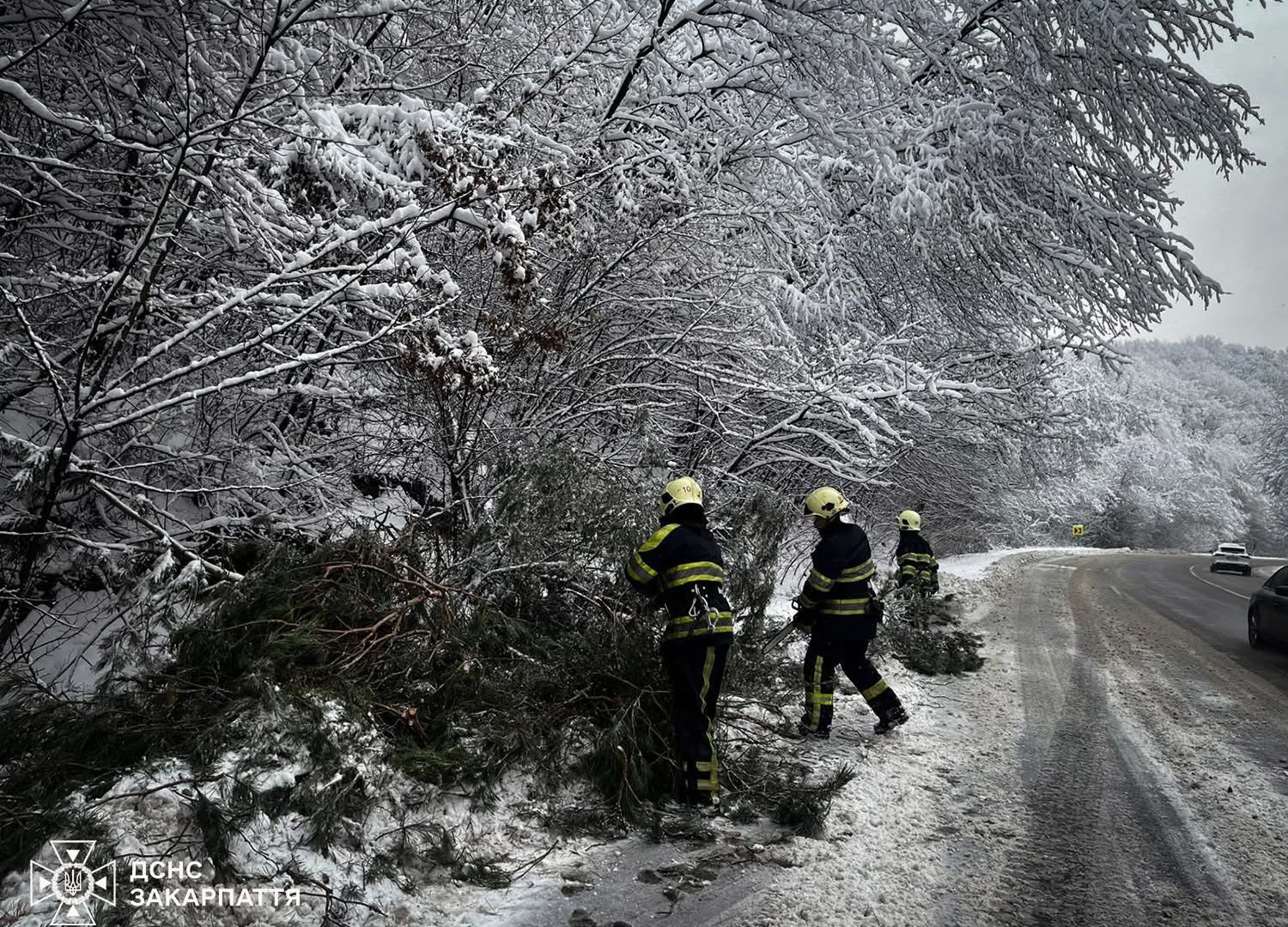 На Закарпатті через сильний снігопад масово падуть дерева на автошляхи і навіть авто ( фото)