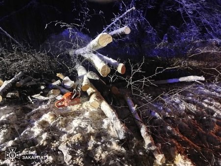 У всіх випадках водії не постраждали, однак знадобилося втручання рятувальників. Підрозділи ДСНС оперативно виїхали на місця подій, розкряжували повалені дерева та звільнили автошляхи для відновлення руху транспорту.