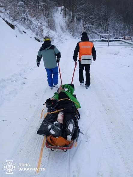 Евакуація проходила в екстремальних умовах: хлопця зафіксували в спеціальних санях (ак’ї) та на швидкості доставили до карети «швидкої», що чекала внизу. Наразі потерпілий перебуває під наглядом лікарів.