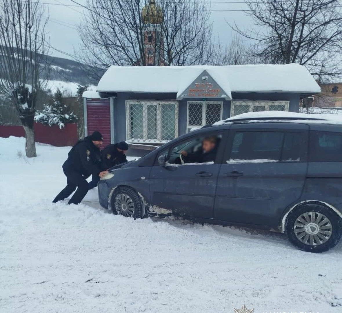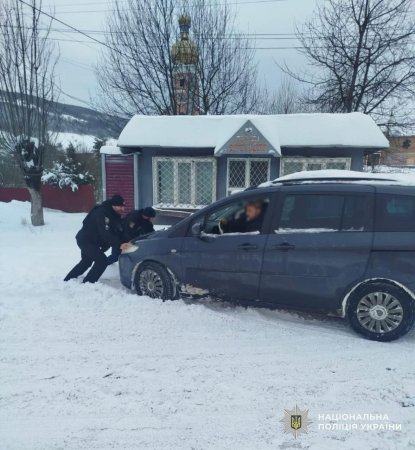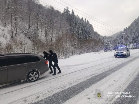 Через інтенсивні снігопади та ожеледицю на дорогах Закарпаття поліція працює у посиленому режимі та надає допомогу громадянам у складних погодних умовах.
