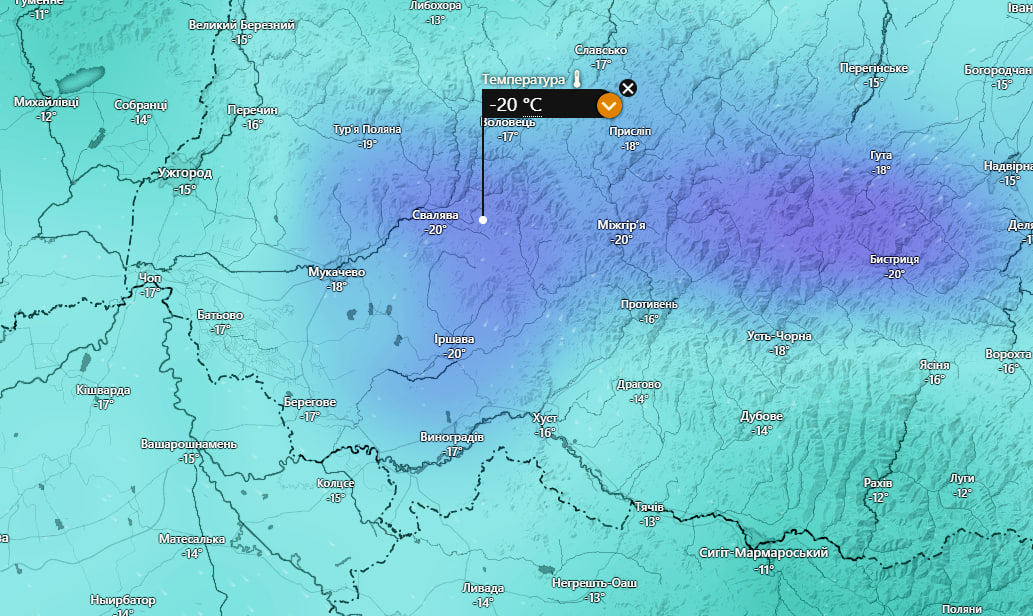 За даними метеорологічних радарів, температурний пік припаде на нічні та досвітні години. Якщо в Ужгороді термометри покажуть від -9°C до -11°C, то в таких населених пунктах як Свалява, Міжгір'я та Іршава, температура повітря може опуститися до критичних -20°C.