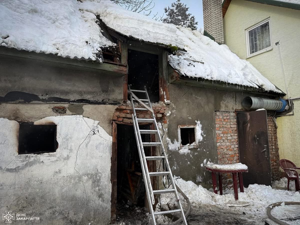 Під час прибирання снігу у дворі мешканець селища Вишково помітив полум’я з-під даху сусідської літньої кухні на вулиці Тиса. Чоловік одразу викликав рятувальників та повідомив власників будівлі про загоряння.