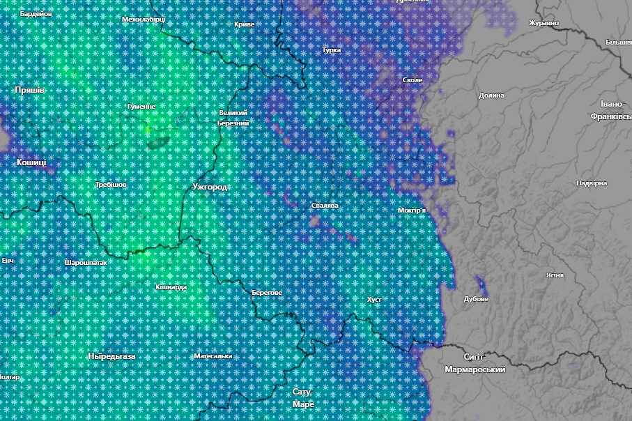 Низинні райони, як-от Ужгород, Мукачево та Берегово, також відчують вплив стихії: тут можливий мокрий сніг з переходом у ожеледь. Температура повітря коливатиметься, що створює додаткові ризики для дорожнього покриття.